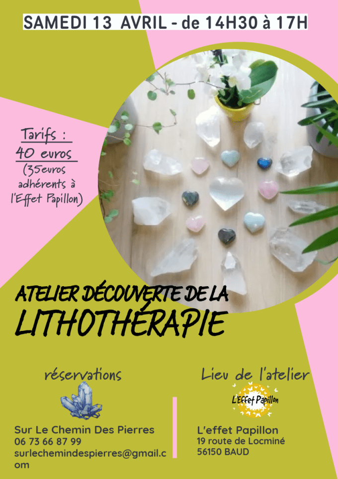 Venez découvrir la pratique de la lithothérapie à l’Effet papillon à Baud (56150), dans le Morbihan le samedi 13 avril!