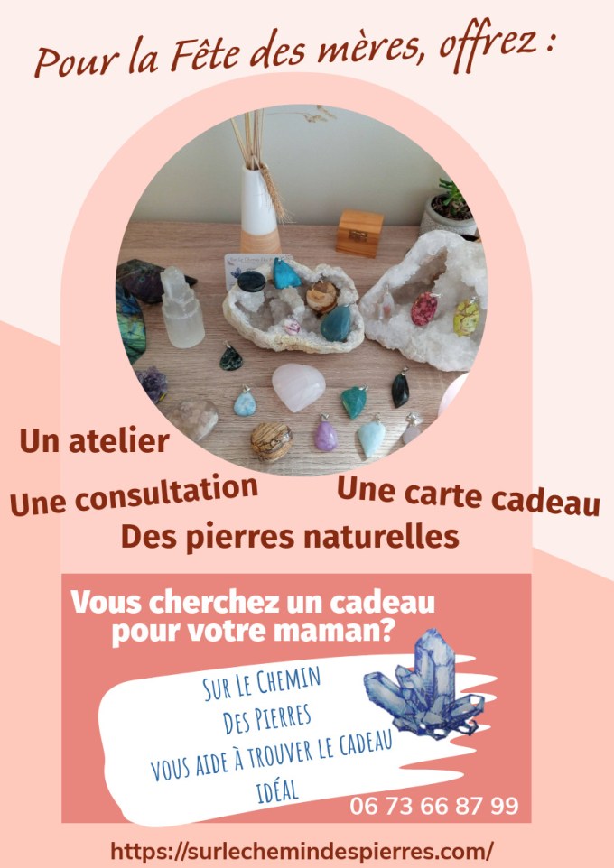 Sur Le Chemin Des Pierres vous accompagne et vous conseille pour trouver le cadeau idéal… Envie d’offrir une consultation? Une pierre? Un atelier? Une carte cadeau à votre maman? Contactez-moi!