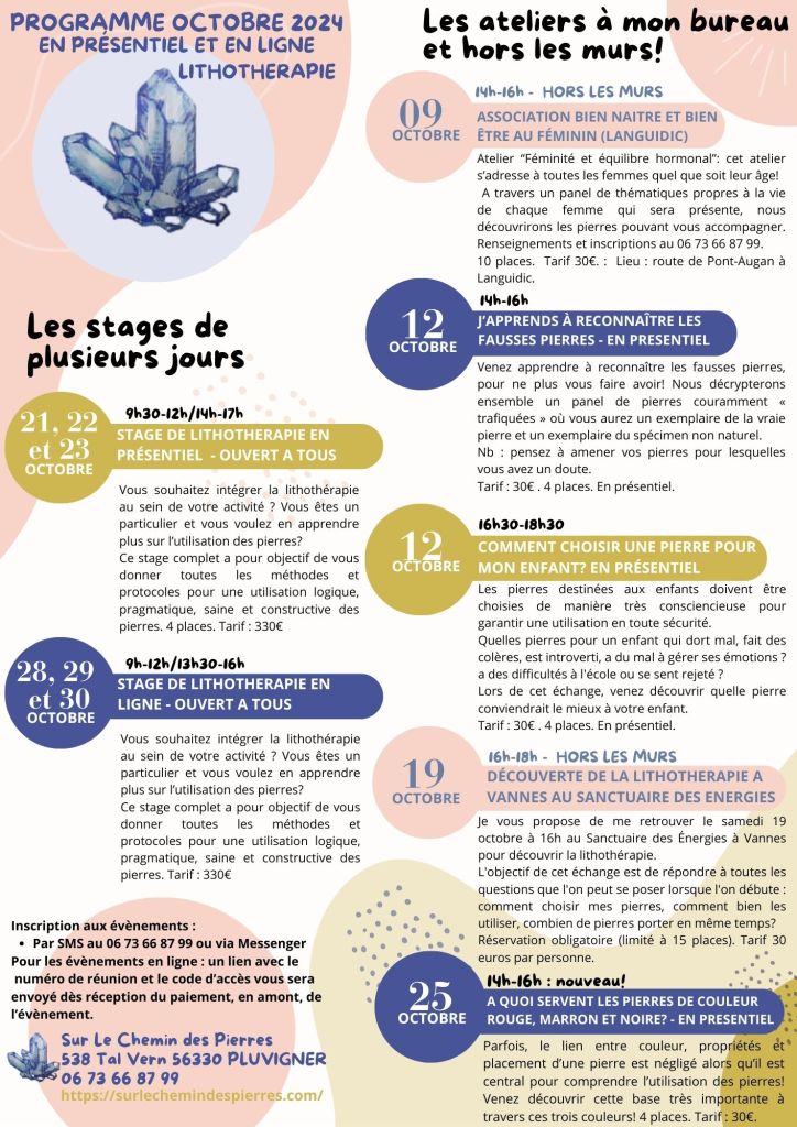 ! Merci Le sanctuaire des énergies pour votre confiance, rendez-vous le 19 octobre! Merci aussi à l’Association bien naître et bien être au féminin de Languidic qui me recevra le 9 octobre.