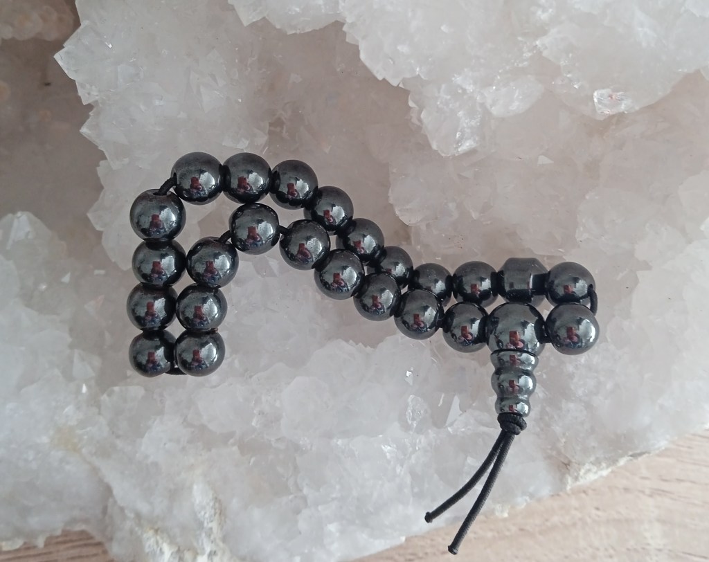 Dans le premier cas : l’appellation « Hématite aimantée » ou encore « Hématite magnétique » est présente et clairement indiquée. Lorsque l’on connaît ce que cela induit, on peut en toute transparence et en toute connaissance de cause, choisir de travailler avec la pierre modifiée par l’homme. Mais par contre, encore dans de trop nombreux cas, aucune indication n’est donnée à l’acheteur pour l’informer qu’il a face à soi une pierre broyée, agrémentée d’un aimant. Là, alors, cela peut être problématique voir dangereux, comme vous le verrez plus bas. On trouve encore trop souvent des bracelets, des colliers ou encore des pierres roulées d’Hématite modifiée, sans qu’aucune indication transparente ne soit affichée.