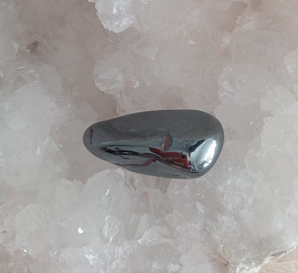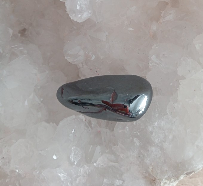 Bien qu’aucune méthode ne soit infaillible, vous pouvez vous munir d’un aimant de cuisine (ceux que l’on pose sur les réfrigérateurs par exemple) pour aller en magasin. Une fois votre hématite choisie, vous pouvez vérifier si la pierre est naturelle ou non en posant la pierre choisie sur un plan de travail plat et en approchant l’aimant de la pierre. Rappelez-vous, l’hématite naturelle est légèrement aimantée, a contrario, de l’hématite modifiée. Si vous êtes face à une hématite naturelle, celle-ci sera légèrement attirée par l’aimant et vice versa, mais sans que la pierre ne le suive ou décolle même littéralement du plan de travail. En revanche, une hématite modifiée, elle, aura une réaction marquée et beaucoup plus brusque avec l’aimant puisqu’elle sera brusquement attirée par celui-ci et ira se coller rapidement et avec force à l’aimant !