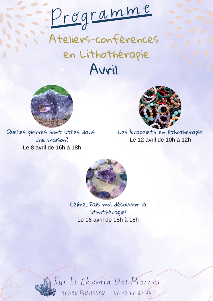 Tous mes ateliers peuvent se faire chez vous à la demande ou en visio, contactez-moi pour avoir plus de renseignements !