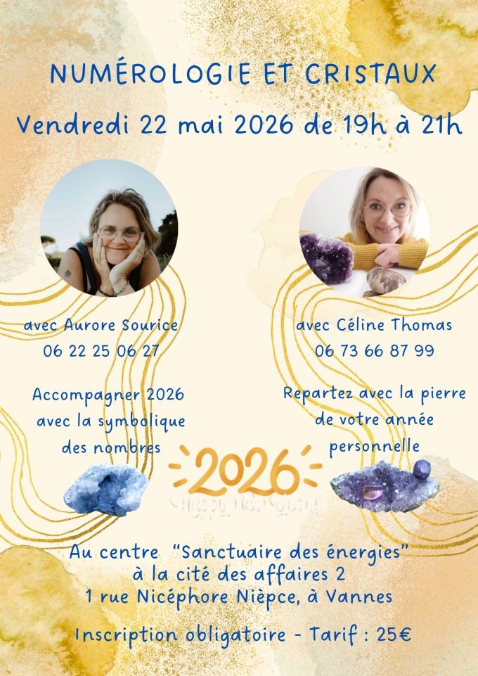 Retrouvez-moi en mai avec Vannes Numérologie Karmique pour un atelier autour de l’année 2026 en numérologie! Vous repartirez également avec la pierre la plus adaptée en fonction de votre année personnelle!